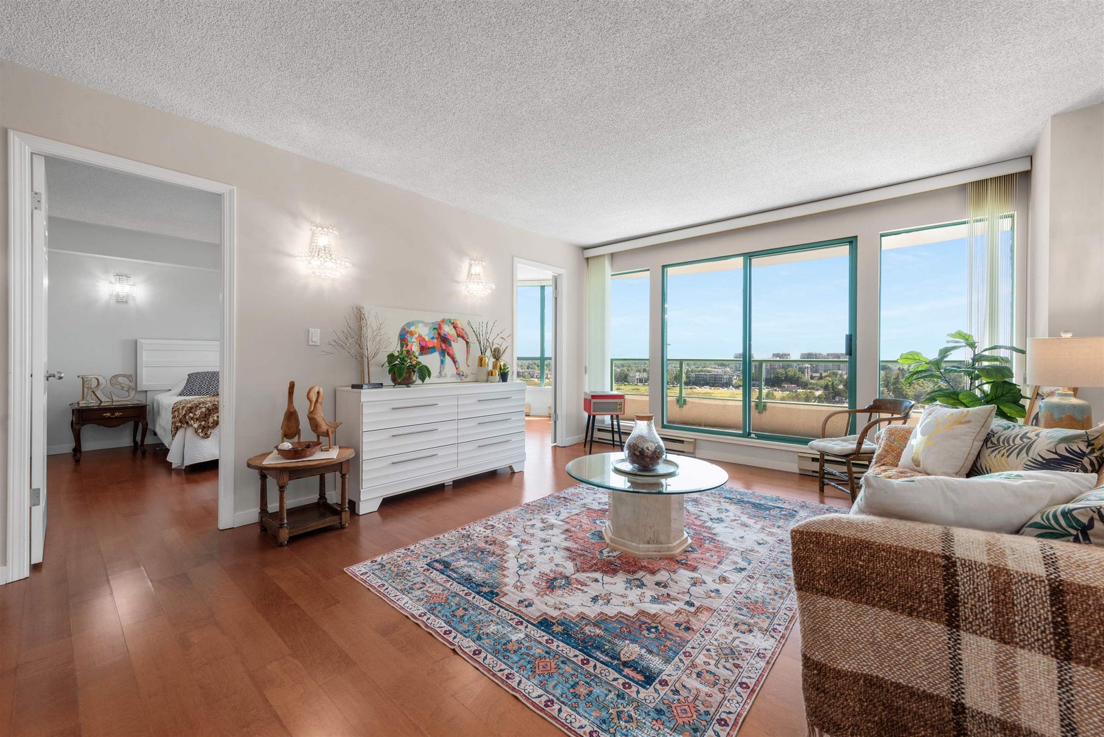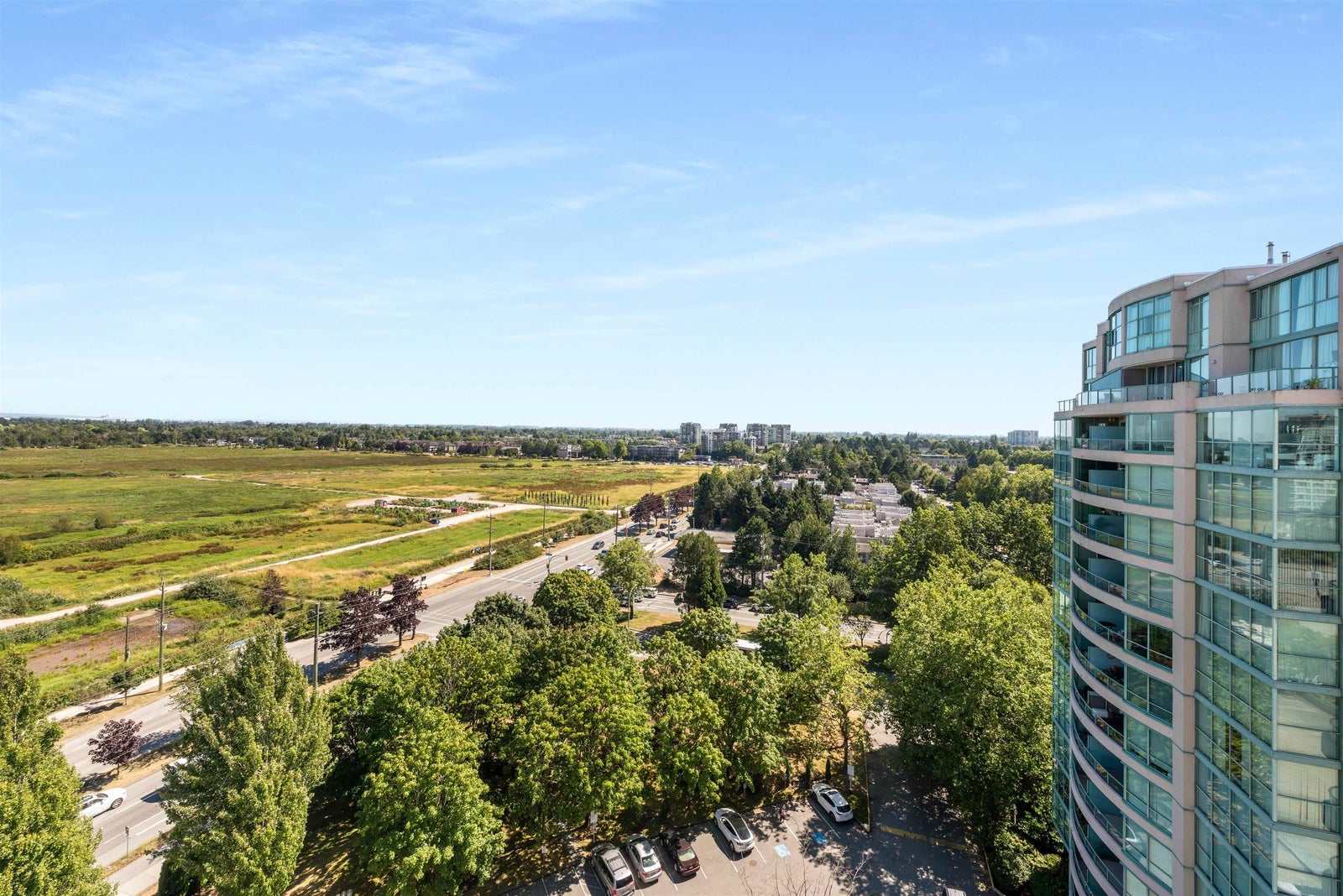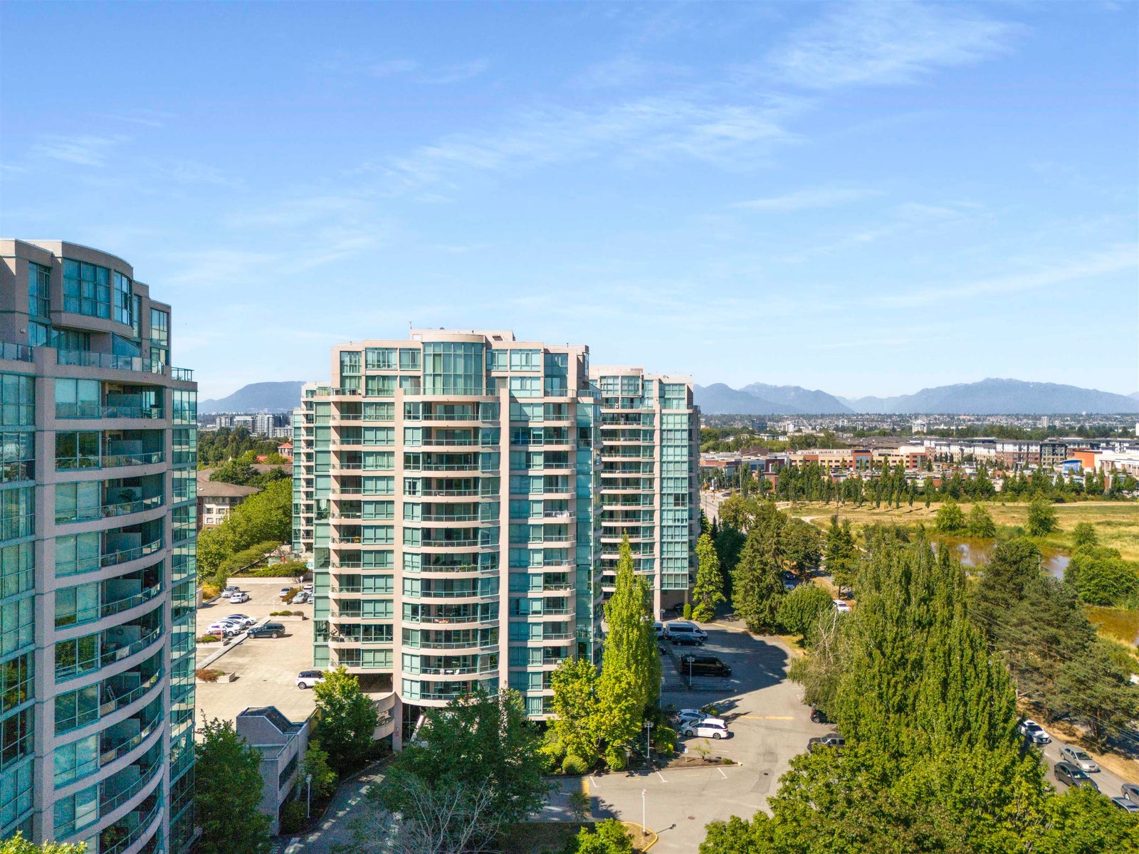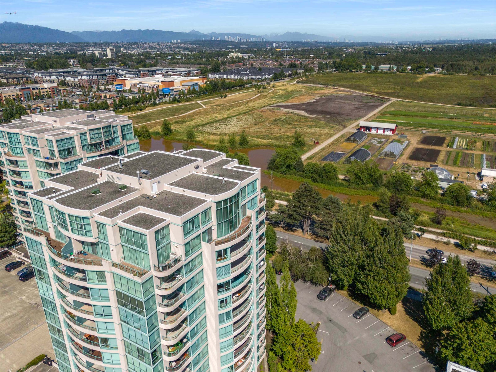 Rare south-facing sub-penthouse at Centre Pointe offering one of the best exposures in the complex with unobstructed mountain and city views. This well-maintained 1,252 SF home features 2 bedrooms, 2 bathrooms, and a spacious den that can serve as a third bedroom or home office. Highlights include floor-to-ceiling windows, a private balcony, an open kitchen with granite countertops and stainless steel appliances, and laminate flooring throughout. Comes with TWO secure INDOOR COVERED parking stalls, one storage locker, and low monthly strata fees. Amenities include an outdoor pool, hot tub, fitness centre, Guest Suite & more, all within walking distance to Skytrain, Lansdowne Mall, Kwantlen, Walmart, T&T, and Garden City Park. (Some images virtually staged).
