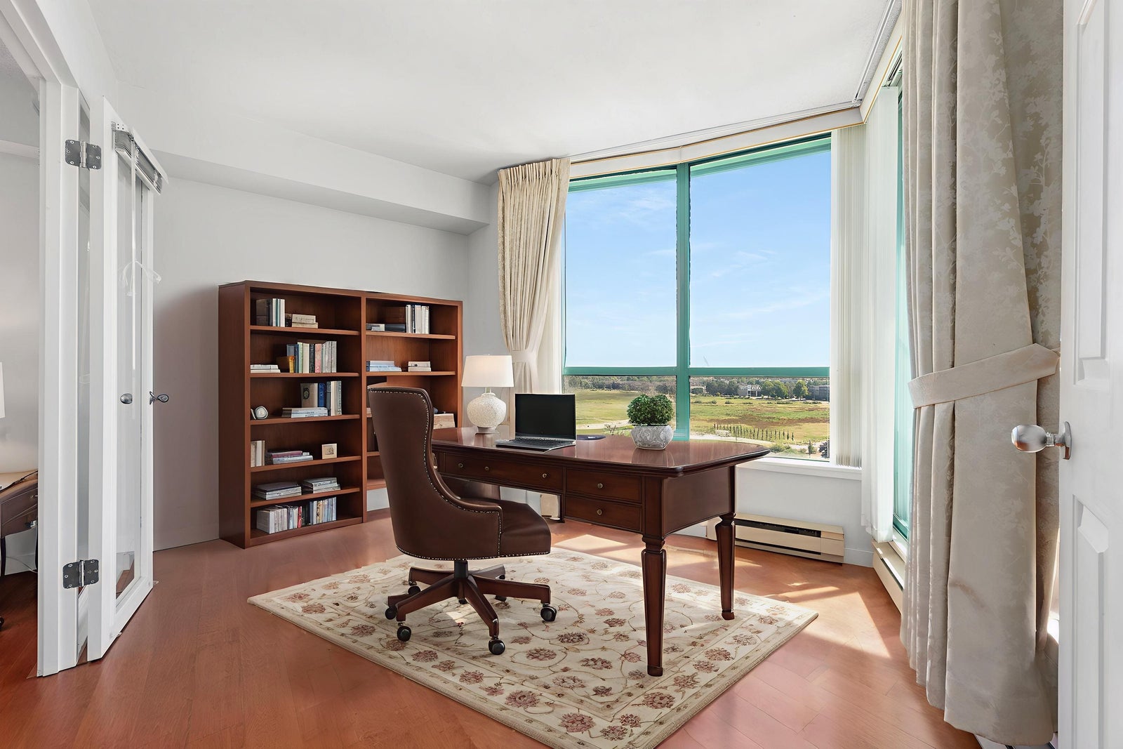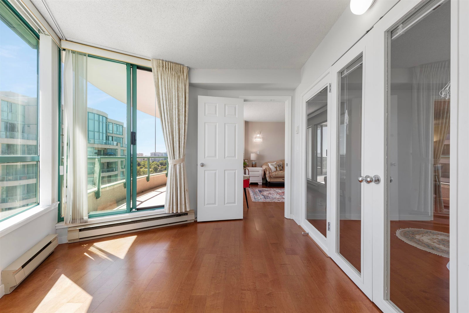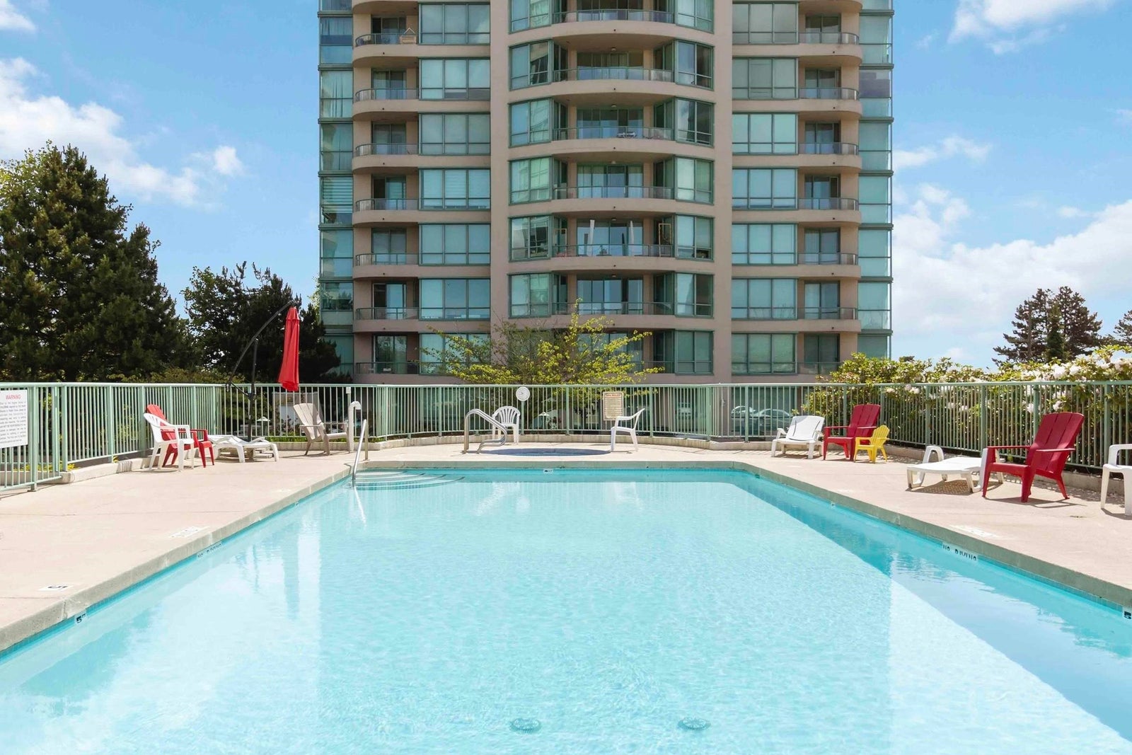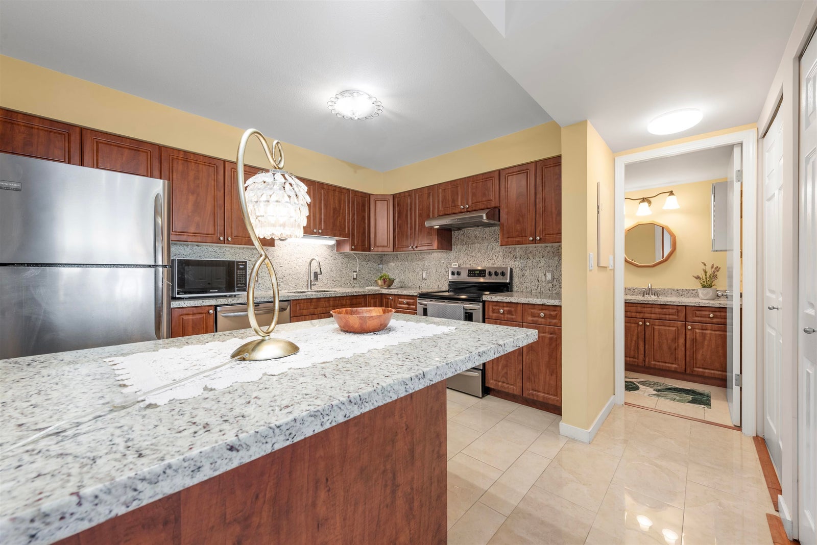 Rare south-facing sub-penthouse at Centre Pointe offering one of the best exposures in the complex with unobstructed mountain and city views. This well-maintained 1,252 SF home features 2 bedrooms, 2 bathrooms, and a spacious den that can serve as a third bedroom or home office. Highlights include floor-to-ceiling windows, a private balcony, an open kitchen with granite countertops and stainless steel appliances, and laminate flooring throughout. Comes with TWO secure INDOOR COVERED parking stalls, one storage locker, and low monthly strata fees. Amenities include an outdoor pool, hot tub, fitness centre, Guest Suite & more, all within walking distance to Skytrain, Lansdowne Mall, Kwantlen, Walmart, T&T, and Garden City Park. (Some images virtually staged).