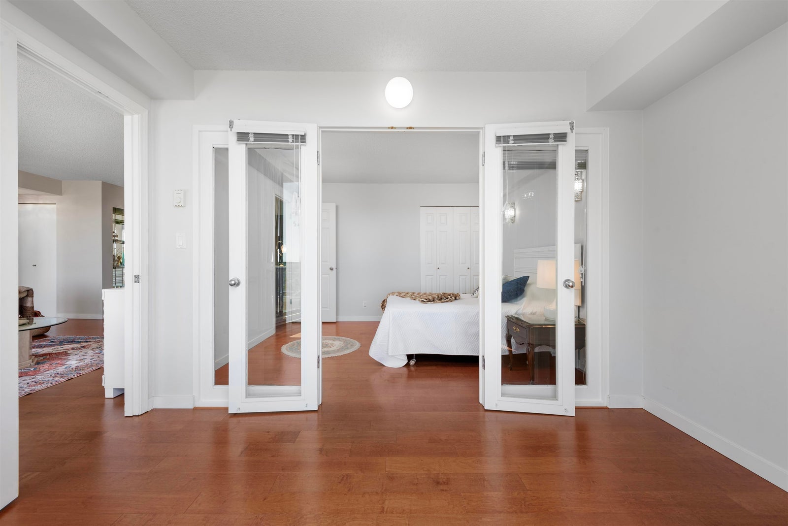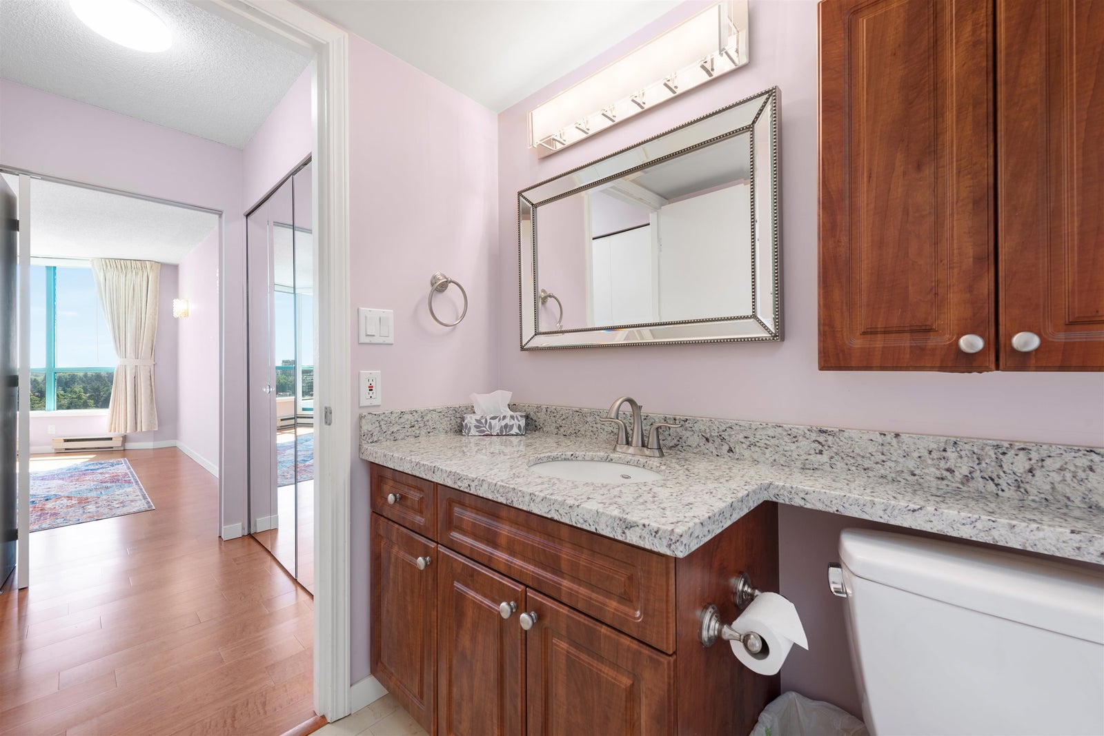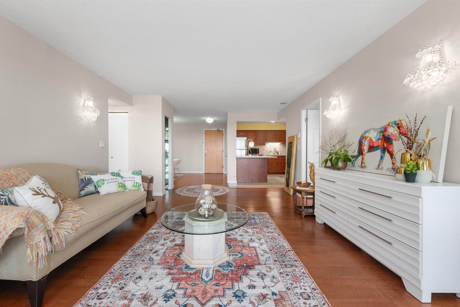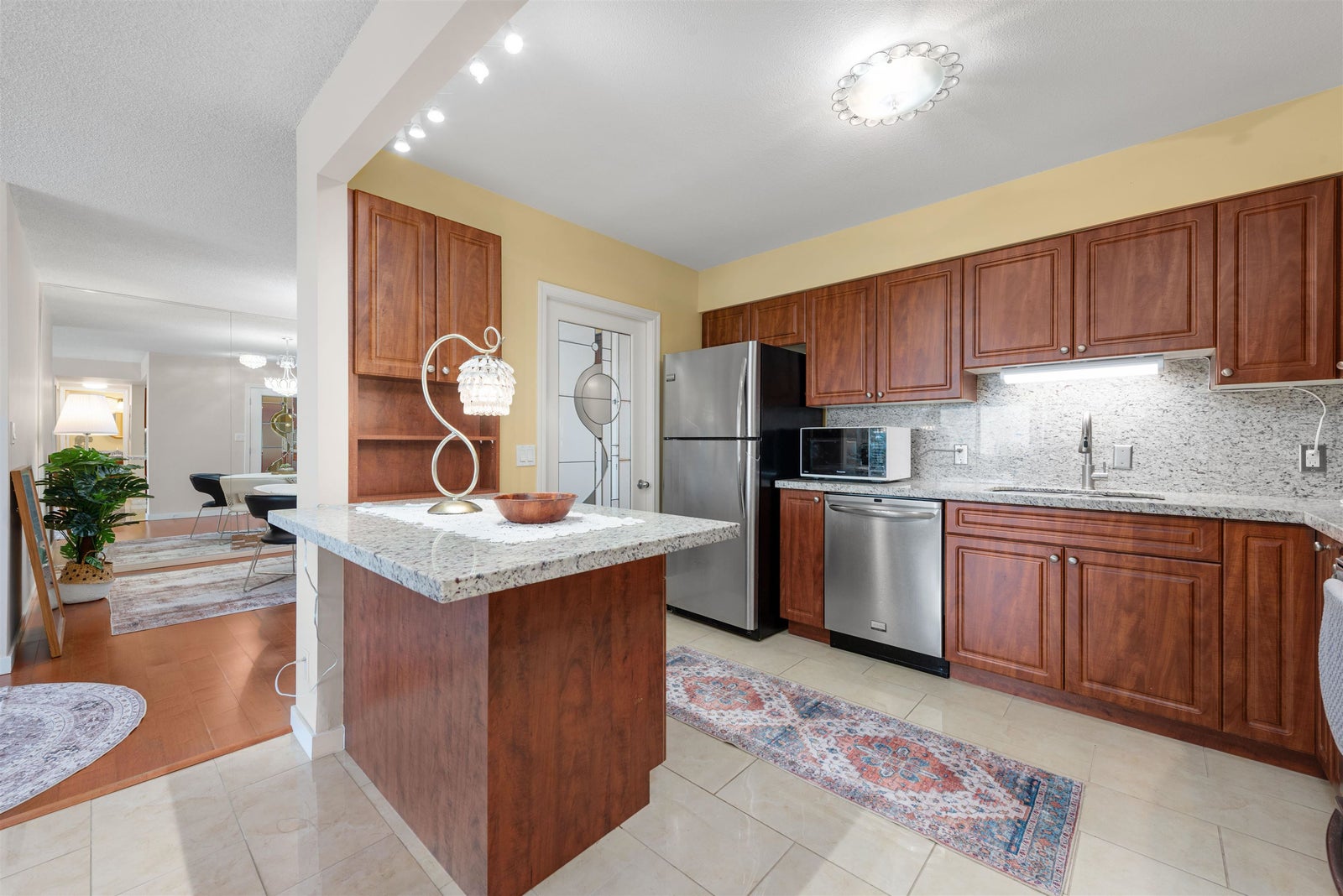 Rare south-facing sub-penthouse at Centre Pointe offering one of the best exposures in the complex with unobstructed mountain and city views. This well-maintained 1,252 SF home features 2 bedrooms, 2 bathrooms, and a spacious den that can serve as a third bedroom or home office. Highlights include floor-to-ceiling windows, a private balcony, an open kitchen with granite countertops and stainless steel appliances, and laminate flooring throughout. Comes with TWO secure INDOOR COVERED parking stalls, one storage locker, and low monthly strata fees. Amenities include an outdoor pool, hot tub, fitness centre, Guest Suite & more, all within walking distance to Skytrain, Lansdowne Mall, Kwantlen, Walmart, T&T, and Garden City Park. (Some images virtually staged).