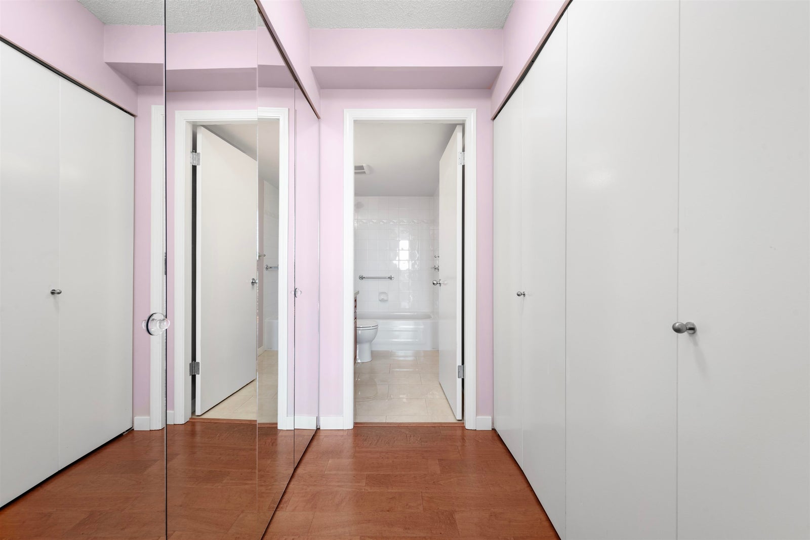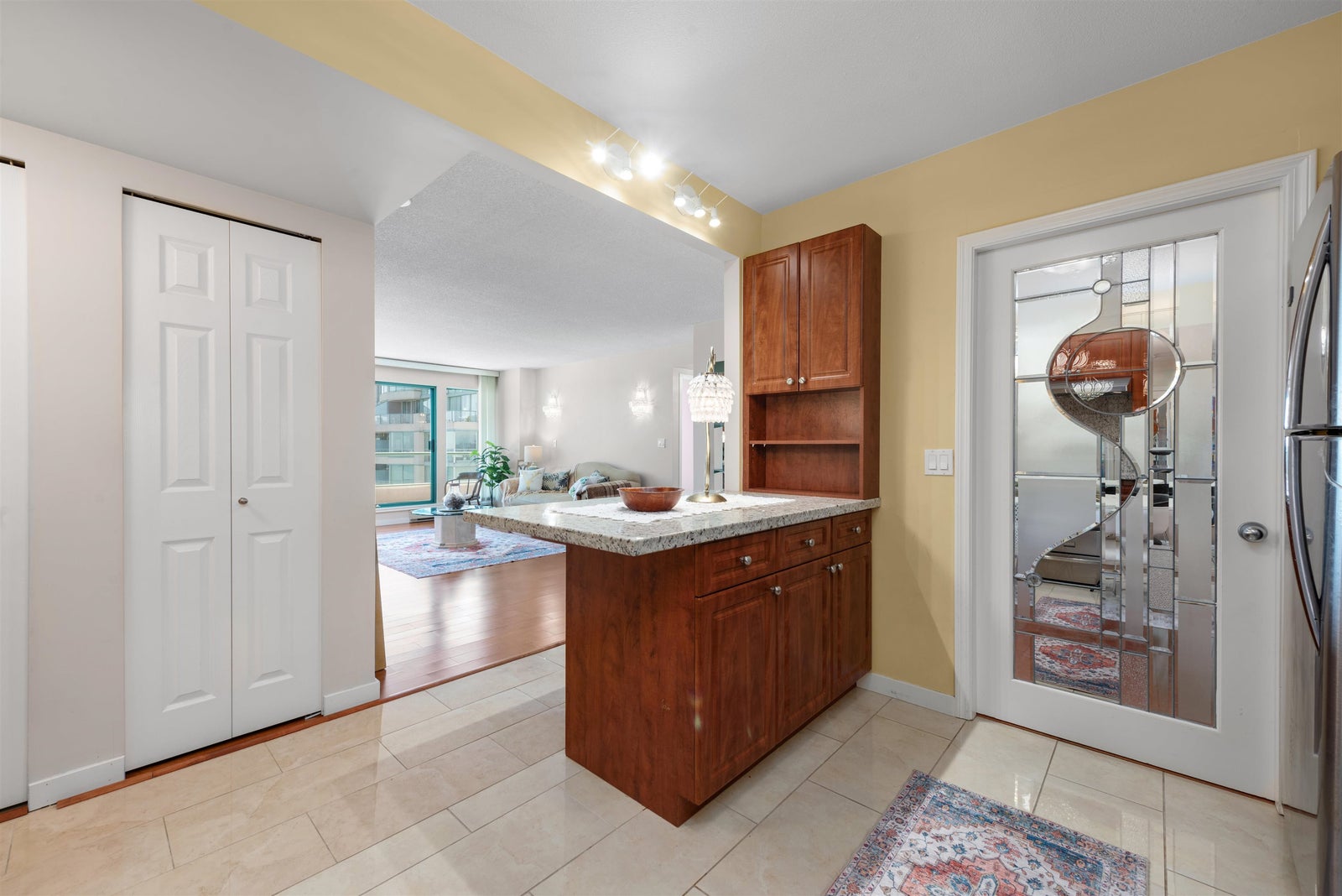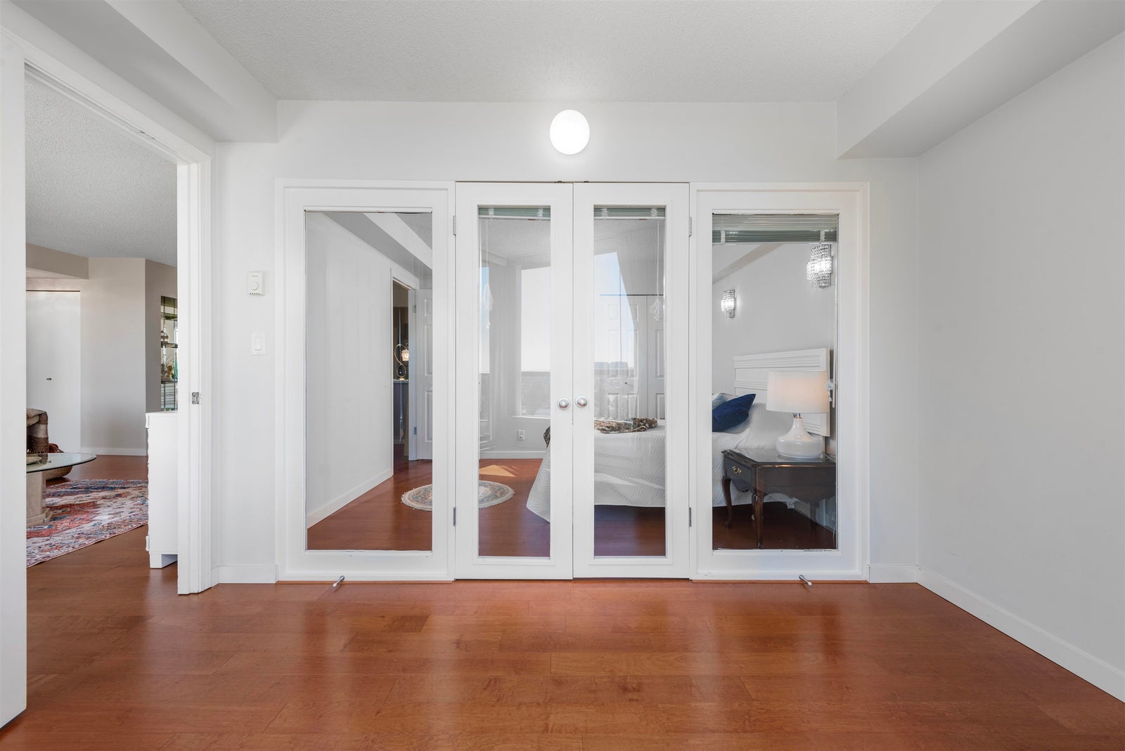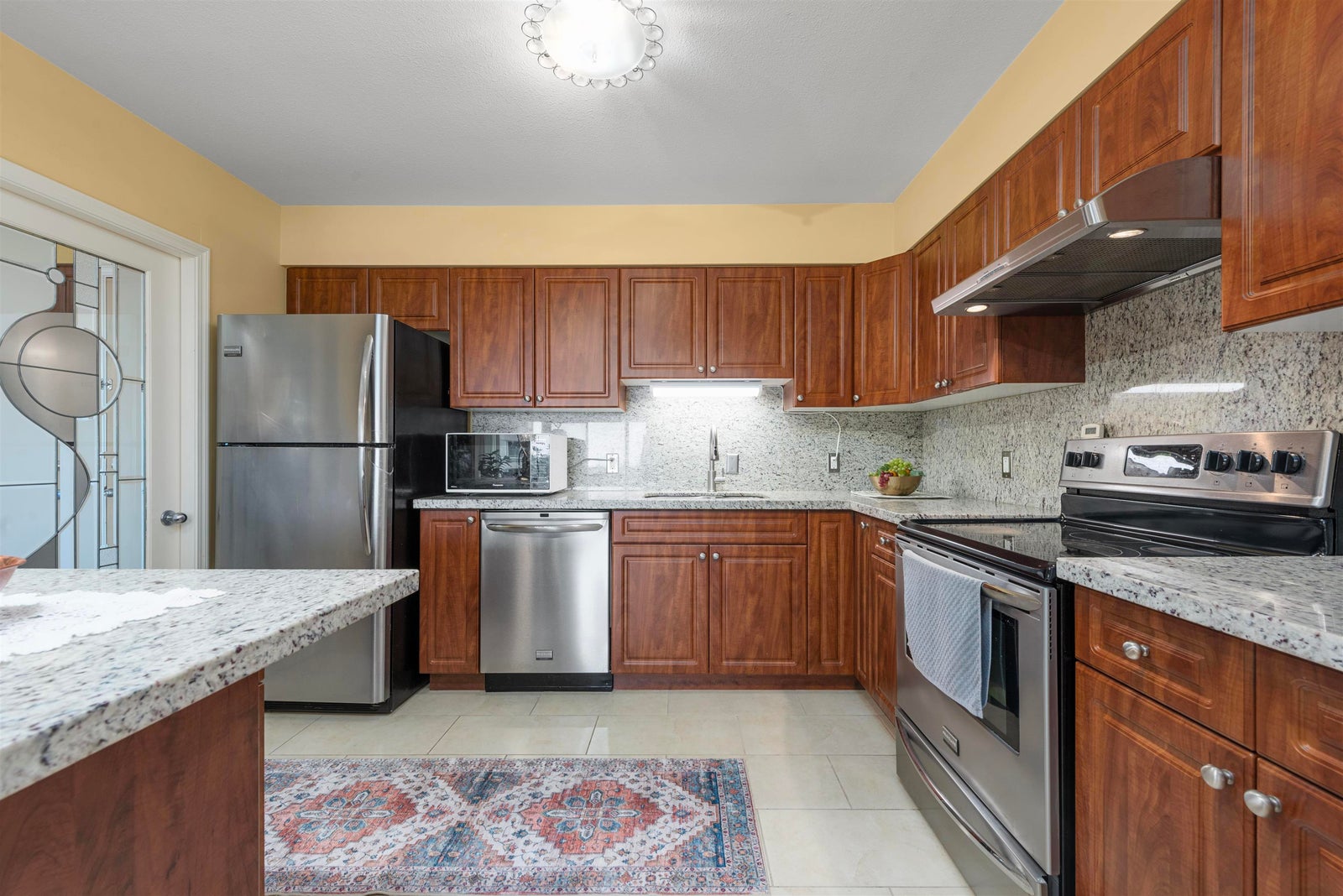 Rare south-facing sub-penthouse at Centre Pointe offering one of the best exposures in the complex with unobstructed mountain and city views. This well-maintained 1,252 SF home features 2 bedrooms, 2 bathrooms, and a spacious den that can serve as a third bedroom or home office. Highlights include floor-to-ceiling windows, a private balcony, an open kitchen with granite countertops and stainless steel appliances, and laminate flooring throughout. Comes with TWO secure INDOOR COVERED parking stalls, one storage locker, and low monthly strata fees. Amenities include an outdoor pool, hot tub, fitness centre, Guest Suite & more, all within walking distance to Skytrain, Lansdowne Mall, Kwantlen, Walmart, T&T, and Garden City Park. (Some images virtually staged).